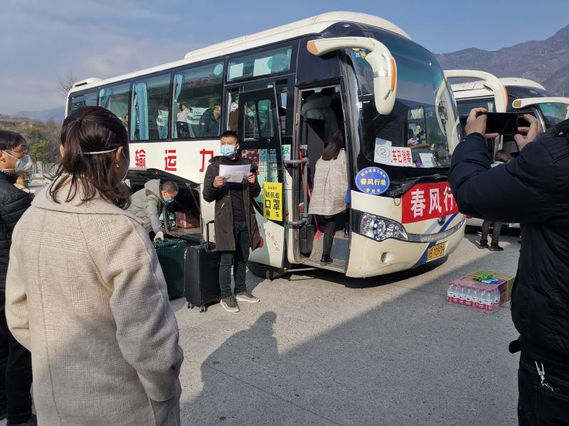 2月13日上午,首批返崗農民工37人乘坐「春風行動」首班兩輛大巴從平武汽車站出發,直達綿陽市火車站,途中除了必要的休息外,不與外界接觸。