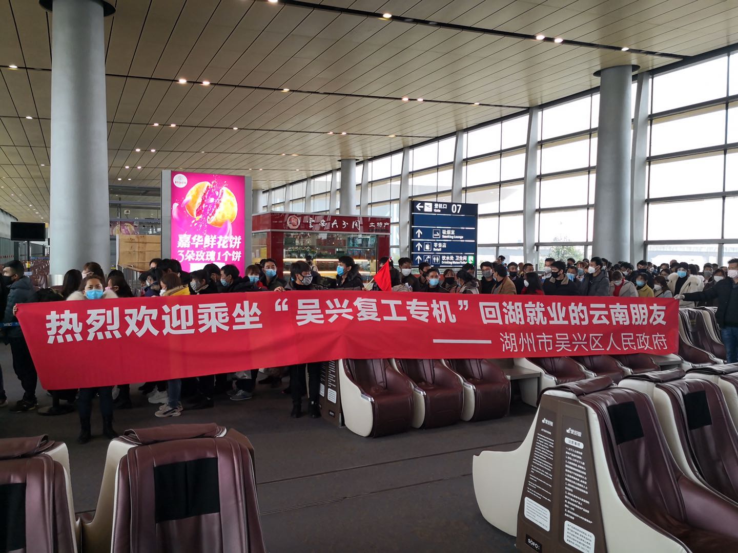 據了解,這是春秋航空執飛的浙江湖州市吳興首個復工包機航班。旅客抵達上海後,分批乘坐7輛大巴車直接前往吳興,工友持“綠碼”登機 ,19日有望上崗復工。即日起,春秋航空也對外宣佈,全力支持復工複產,承接各地政企復工包機任務。