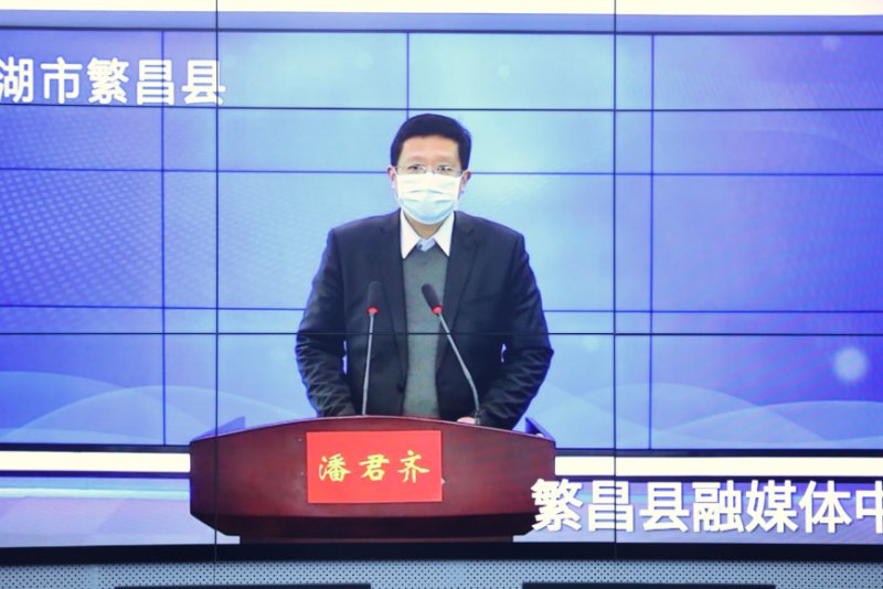 在安徽省新型冠狀病毒肺炎疫情防控領導小組辦公室召開的新聞發佈會上,繁昌縣委副書記、縣人民政府縣長潘君齊介紹疫情防控和企業復工復產有關情況