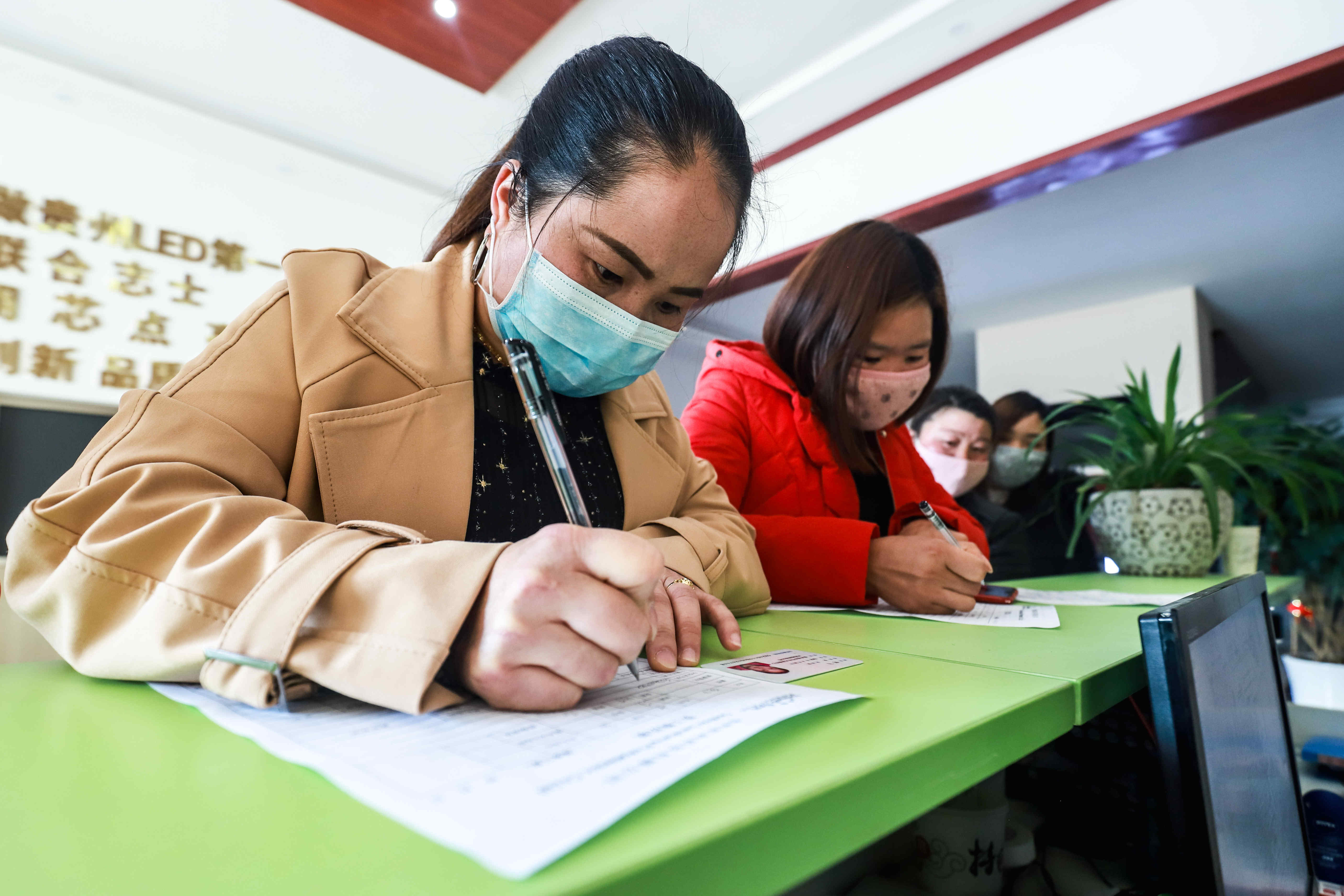 「聽工作人員的介紹後,我覺得這裡的待遇還不錯,而且離家近,我還可以照顧小孩。有政府和公司的雙重保障,簽訂了入職表,回家準備着體檢入職。」何飛說。