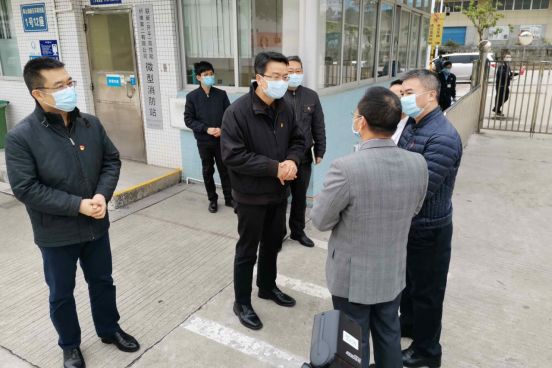 開平市委書記龐正華(人群中間者)到聯新公司暖企,指導有序復工