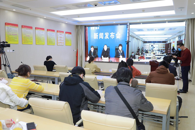 網路新聞發佈會上,滁州市委書記張祥安介紹相關情況,滁州市委常委、常務副市長金力,滁州經信局局長寧建斌先後回答記者提問