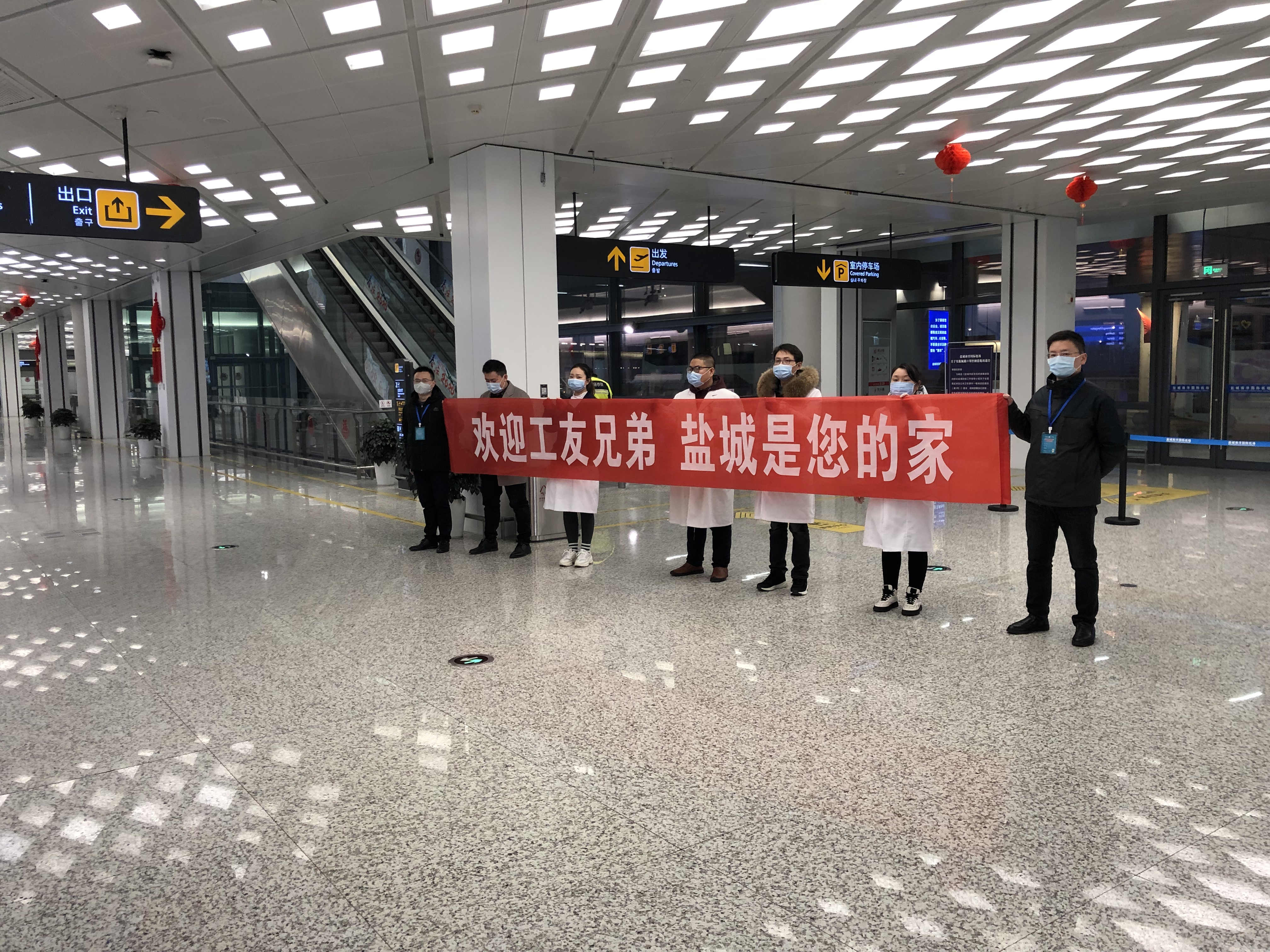 鹽城南洋國際機場有關負責人表示,為服務本地企業復工,鹽城南洋國際機場積極鋪設「復工空中通道」,專機抵達前已提前部署了接送大巴車輛的停車點並增派體溫監測人員,由專人全程引導,確保所有復工人員安全、有序、快速出港。