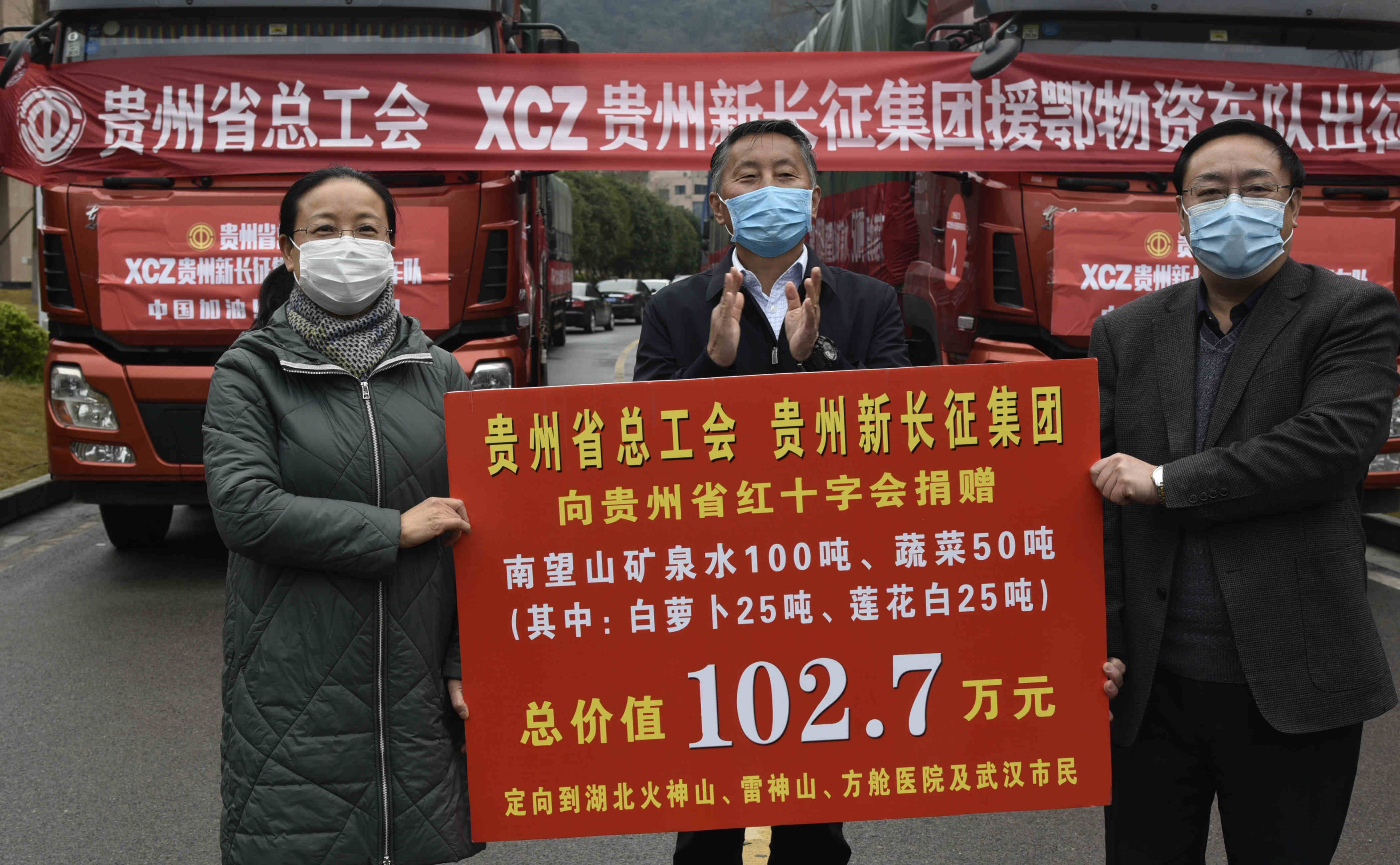 據了解,省總工會近日得知武漢生活物資緊缺後,第一時間成立專項小組,對物資籌備工作進行緊急安排,省總工會直屬企業——貴州新長徵集團立即展開物資籌集和生產。從17日下午接到指令開始,息烽溫泉南望山飲用水公司36名工人三班倒,24小時不間斷生產,並於20日下午3點將100噸礦泉水裝車完畢。省總工會同步小康駐村扶貧工作隊員也迅速行動,在扶貧聯繫點熊家場鎮採購、收集蔬菜,並於20日下午將50噸蔬菜運抵貴陽。同時,省總工會安排專人及時調配車輛,並與江夏區新冠肺炎疫情防控指揮部辦公室對接,積極協調辦理通行證明,確保物資及時順利送達武漢。為確保物資和人員的安全,省總工會還組織省職工醫院院感科,對省總工會援鄂物資車隊的駕駛員進行了一對一防護培訓。