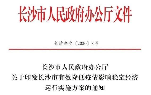 其實,在這份方案出台5天前,長沙市政府辦公廳就下發了《關於應對新型冠狀病毒感染的肺炎疫情支持中小企業共渡難關的若干意見》。