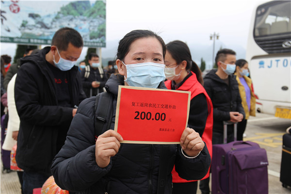 據了解,為保障農民工安全有序返崗,支持企業復工復產,荔波縣啟動農民工安全有序返崗,組織「點對點、一站式」直達運輸服務和公路鐵路旅客聯程運輸,安全有序地將身體健康、體溫檢測合格的返崗農民工送至工作崗位。