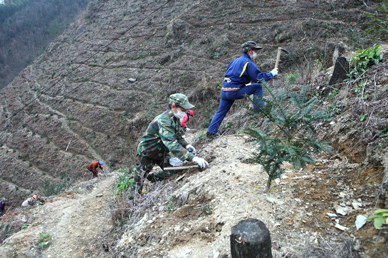 2月24日,休寧縣鶴城鄉新安源村香榧基地忙碌起來了,來自附近的12位村民正在幼林下套種中藥材黃精。