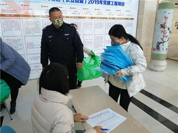 由無錫惠山經濟開發區企業自產的口罩於2月18日起陸續發放給轄區復工企業和社區居民。圖為轄區環安局工作人員登記整理即將發放的口罩等防疫物資 蘇虓攝