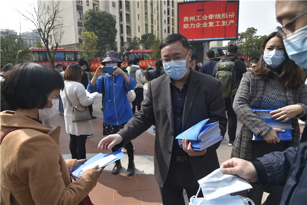 據悉,貴州省總工會在助力企業平穩有序復工復產過程中,還加大援企引工力度,拓展工會網上就業招聘渠道。截至目前,聯合貴州省人才大市場開展「2020年春風行動暨就業援助月——復工復產就業招聘活動」提供招聘崗位 94114個,招聘企業數達到 1363家。本次活動共幫助遵義和安順等地100多人實現就業,其中包括易地扶貧搬遷集中安置點困難群眾和建檔立卡貧困戶。(黃慶松)