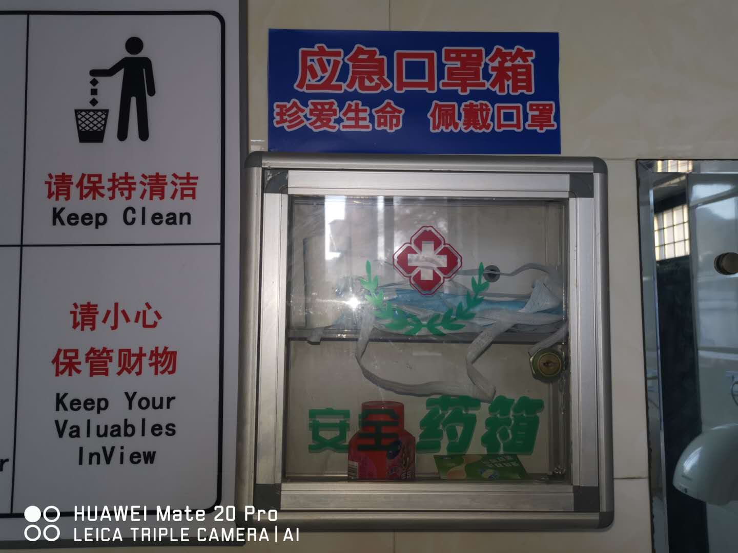 在平房區新疆大街一處公廁入口處,有一個醒目的應急口罩箱,裏面有五個一次性口罩。如果附近的老百姓外出時所戴口罩突然破損或者其他原因無法再使用,他就可以與值班的保潔人員溝通,在做好登記後,免費領取一個一次性口罩。目前,平房片區的新疆大街、友協大街等四十多個街路旁公廁、各公園門口服務站、保潔大隊、綠化隊、市容市政中心等,總計六十個點位設置了公益性質的應急口罩箱。