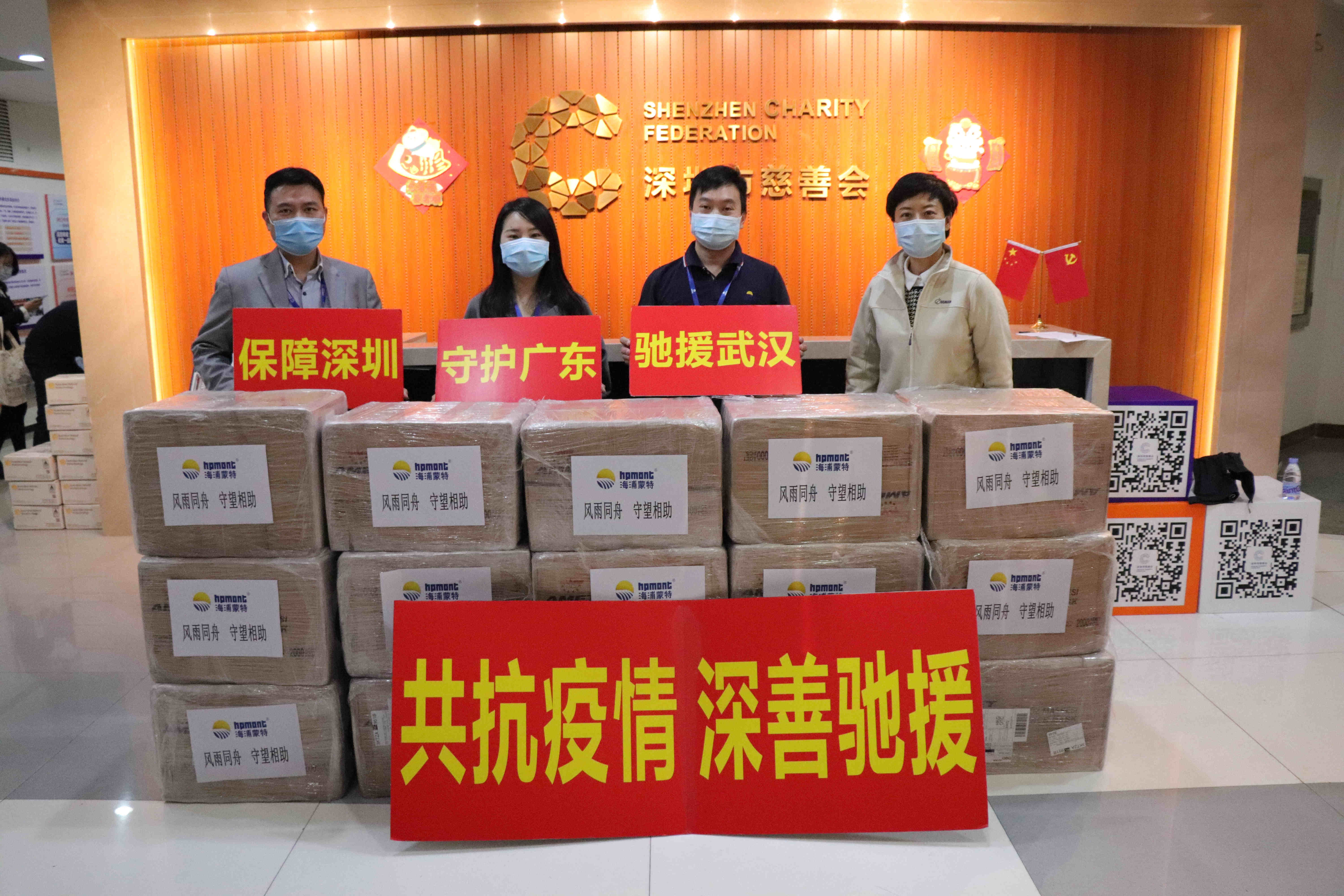 疫情爆發後,海浦蒙特全體同事在黨支部和工會組織的倡議下,自發向公司申請將用於年會活動的費用全部採購防控物資,捐贈給深圳市慈善會用於一線疫情防控工作。在國內防控物資稀缺,一「罩」難求的時候,他們利用海外分支機構,開始從全球各地搜集口罩等一線防控物資。最終在土耳其確定採購10萬口罩訂單。