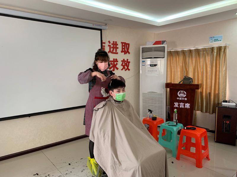 「理髮師是工會專門請到項目上來的,一來避免職工外出產生的風險,二來有效保障職工安心復工。」據項目書記甘萬德介紹,把理髮師請到項目部為職工服務,只是項目部一手抓疫情防控,一手抓復工復產的硬核舉措之一。