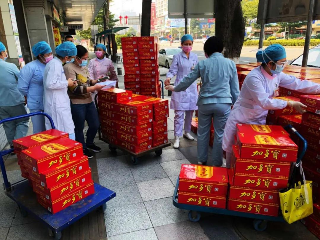 截至2月23日,愛心企業加多寶集團又繼續增加捐贈15萬箱涼茶,共計捐贈雷神山醫院、火神山醫院、黃岡第一人民醫院、孝感第一人民醫院等武漢市及湖北省46家防疫指揮中心和醫療單位,同時捐贈廣東省、浙江省、河南省、湖南省、江蘇省、安徽省、江西省、陝西省、重慶市9省市32家防疫指揮中心和重點醫療單位。