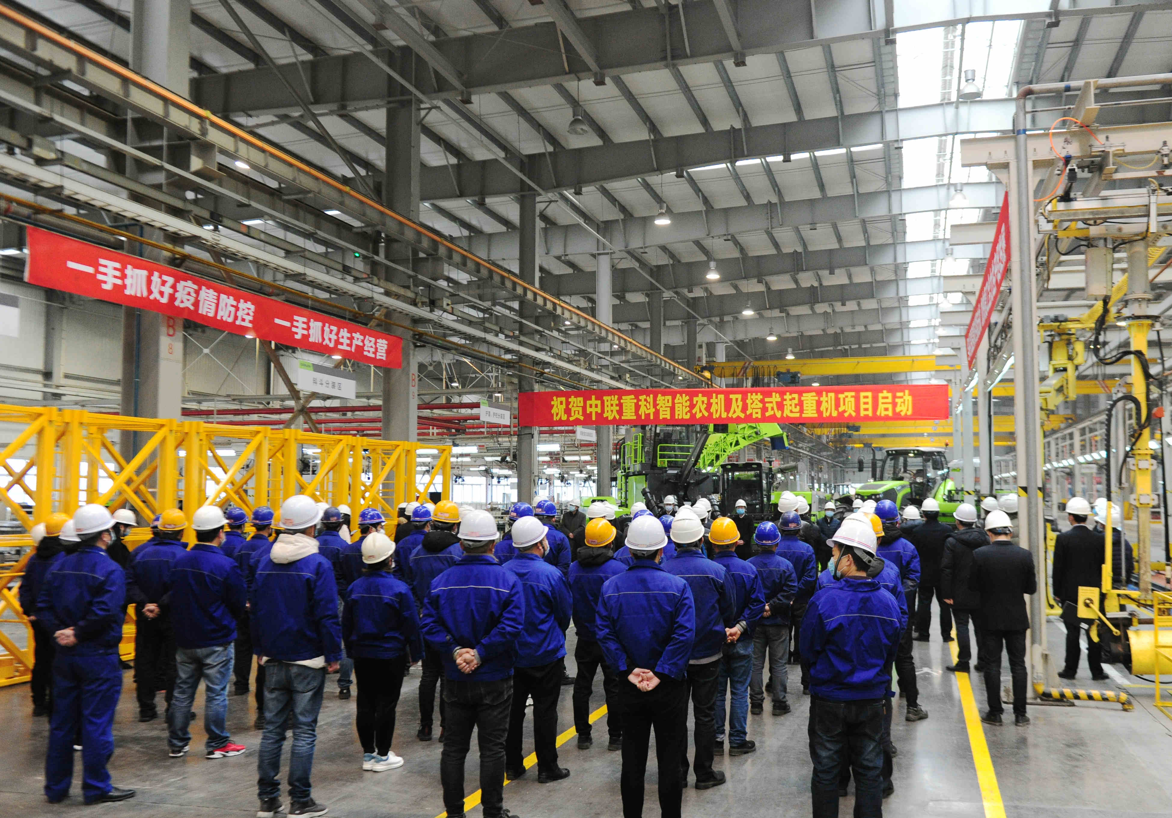 活動現場,中聯重機車間一片機聲隆隆,工人們正在加緊生產。總投資20.5億元的智能農機裝備研發與產業化升級改造項目啟動開工,未來將生產AI農機產品、CVT大馬力拖拉機、大型高端甘蔗收穫機等農業智能化裝備。