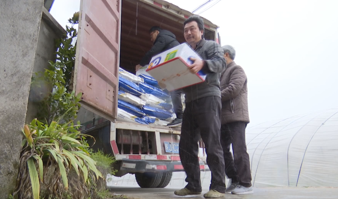 農業生產物資送到了大棚蔬菜種植戶郭華龍的基地內