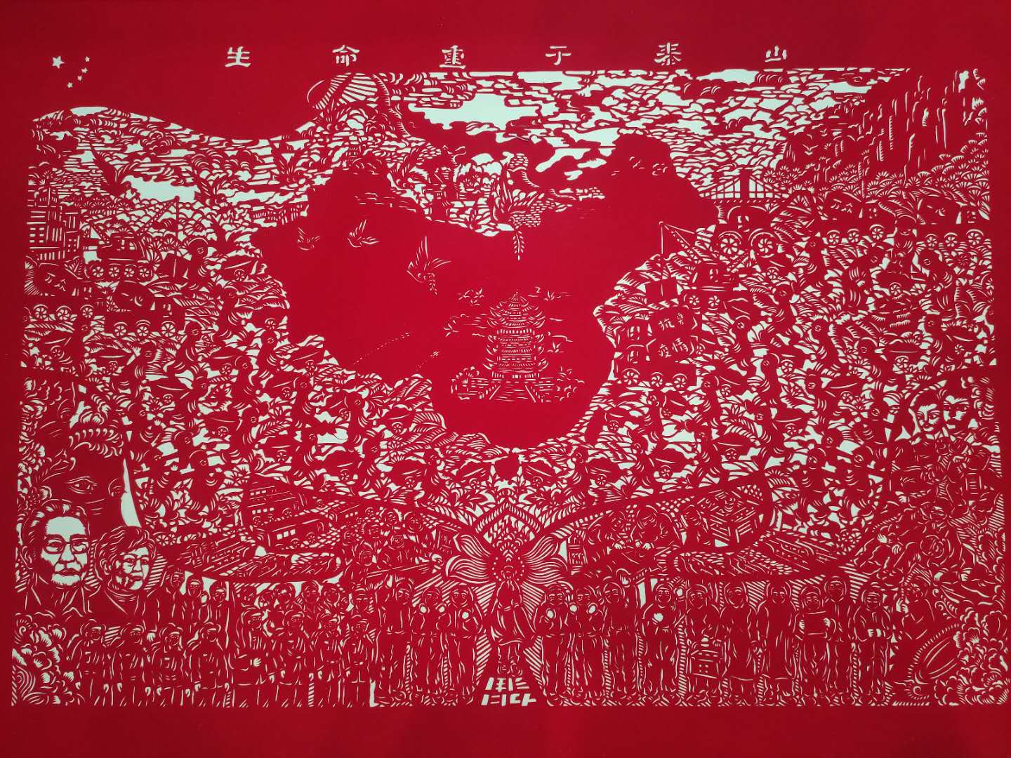 【香港商報網訊】近日,山西省翼城縣剪紙愛好者劉崢嶸花費二十天時間創作出作品《生命重於泰山》(長110cm×寬80cm)。