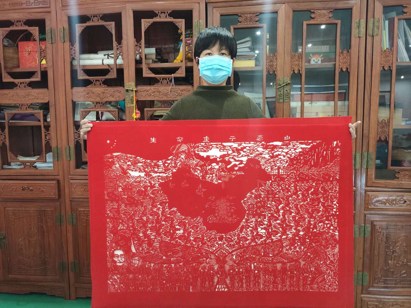 談及自己的創作初衷,劉崢嶸說,看到媒體上報導醫護人員、廣大幹警、志願者奮戰在疫情一線的感人故事,便想著用剪紙藝術為抗疫英雄們點贊,祝願祖國平安富強。