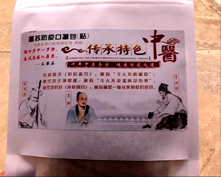 據瞭解,屠蘇包防疫口罩貼源於葛洪《肘後備方》,其中藥成分內含金剛胺、祁術、桂枝、防風、桔梗等,方劑具有千年曆史,為民間大眾防疫必備藥方,流傳甚廣。