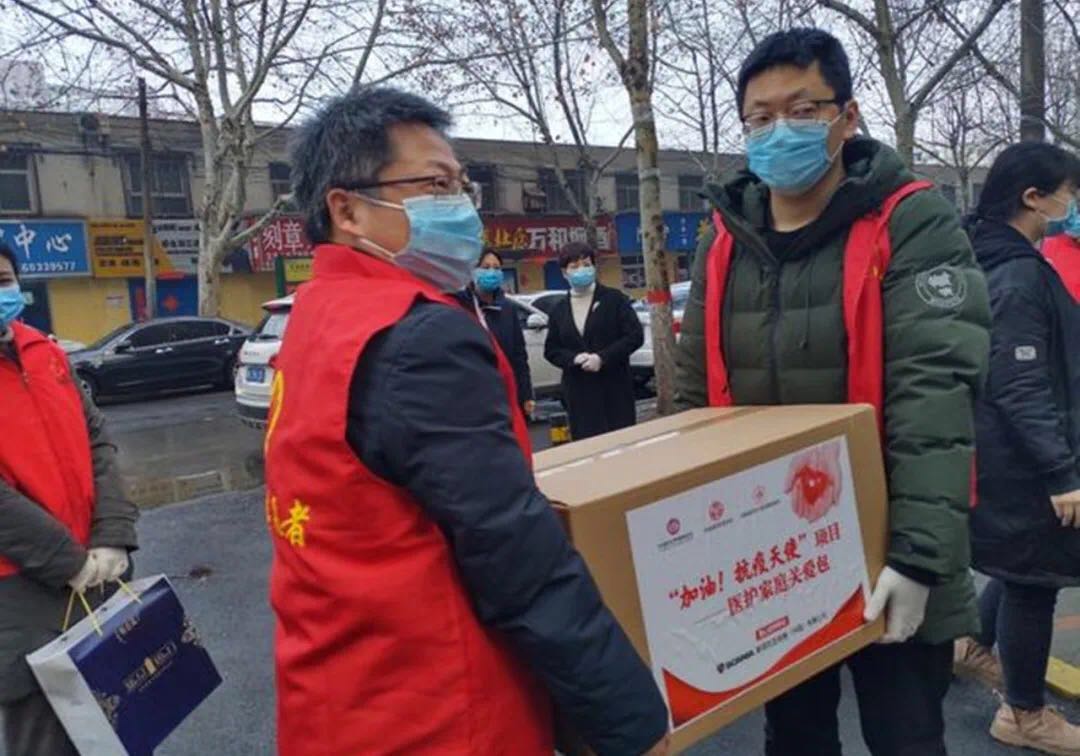河南省婦聯志願者分別為馳援湖北一線的醫務人員家庭代表河南省人民醫院豆浩家庭和鄭州大學第一附屬醫院鄧夢樂家庭,送去了愛意滿滿的「暖心包」。