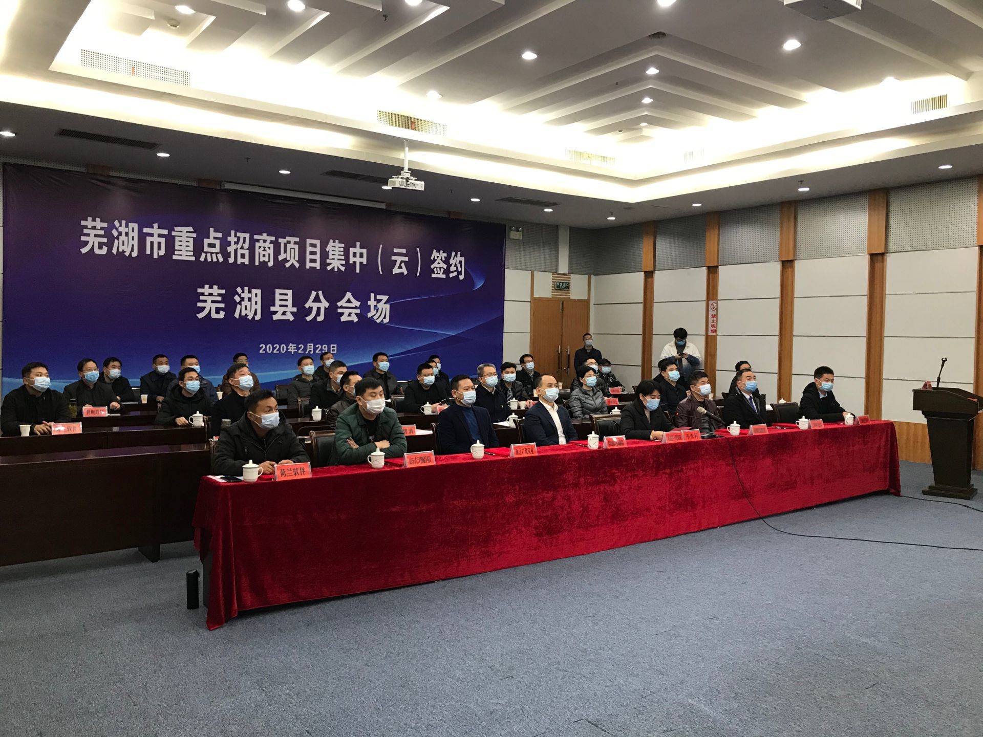 在本次活動現場,與會人員共同觀看了蕪湖縣招商引資宣傳片,收看市招商引資項目集中(雲)簽約活動,並舉行了集中籤約儀式。崑山超群金屬製品有限公司汽車輪轂製造項目、珠海拾比佰彩圖板股份有限公司家電新材料研製項目等11個招商引資項目集中籤約,其中外資項目4個,產業類別為航空、高端裝備製造、汽車零部件等。