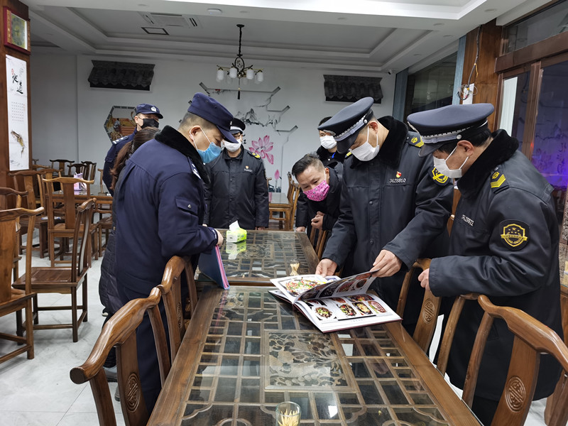 “一定要做好個人防護”,“口罩要正確配戴”,“店堂和電梯要定時消毒”,“回收餐具要先消毒再回收”,巡查人員一家家、一遍遍溫情提醒。每一個亮燈的門店,巡查人員必會走進去查看。市場監管局的工作人員將《疫情期間致餐飲企業一封信》交到店主手中,並就疫情期間從業人員管理、設施設備消毒及如何設置隔離取餐臺等向經營者進行詳細說明,耐心解釋不充許堂食的原因。公安民警對酒店入住客人信息進行查詢,發放禁食野生動物法律法規宣傳冊,告知業主不能加工制售以野生動物為食材的菜肴。綜執局執法隊員對已復工企業的從業人員信息進行仔細核對,確保信息無誤。