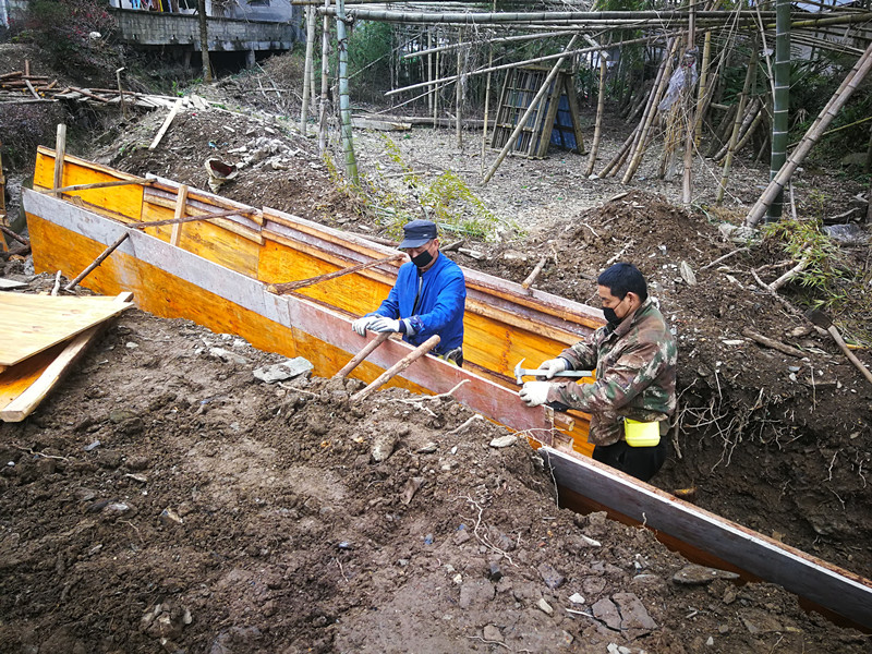 黟縣廟林村積極回應美溪鄉黨委政府的部暑,統籌做好村級项目復工、農業生產、旅遊開放、脫貧攻堅等工作。圖為扶貧到村專案——廟林村上林組溝渠建設项目工地