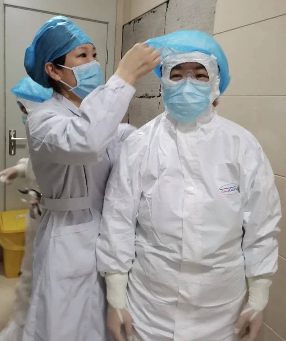 你給進入病區的戰友穿上防護服