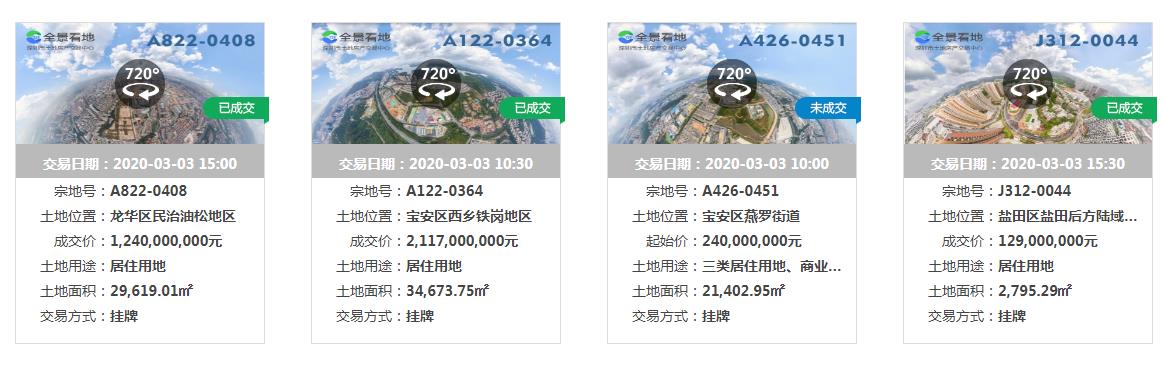 此外,受新冠病毒疫情影響,深圳市土地房產交易中心分別於2020年1月31日和2月13日兩次發佈補充公告,將2020年深圳4宗宅地出讓的交易日期最終推延至3月3日進行。