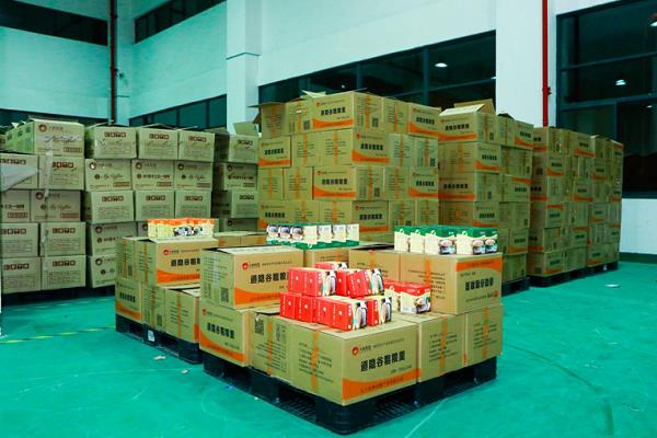 在大象聯盟「中國三同產品集散中心」等待裝運的防疫物資
