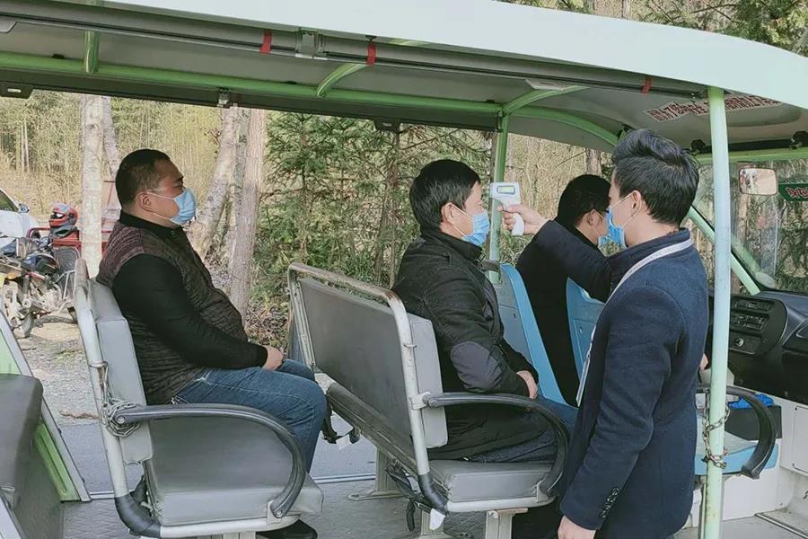 為了迎接開園,徽黃旗下各景區以及設施早早的就按照要求進行了消毒,確保遊客遊覽安全,在園區醒目位置設立了廢棄口罩統一回收桶,方便遊客丟棄。景區入口的工作人員為遊客依次測量體溫、登記資訊、檢票驗票,並引導遊客主動戴口罩,入園後不聚集。