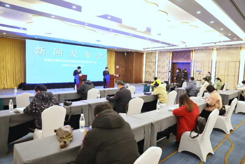 發佈會現場,安徽省委宣傳部部務會成員、省文明辦主任楊明世(右)介紹相關情況並回答記者提問,省委宣傳部新聞發佈處處長武瀟主持發佈會,(劉煒鑫/攝)