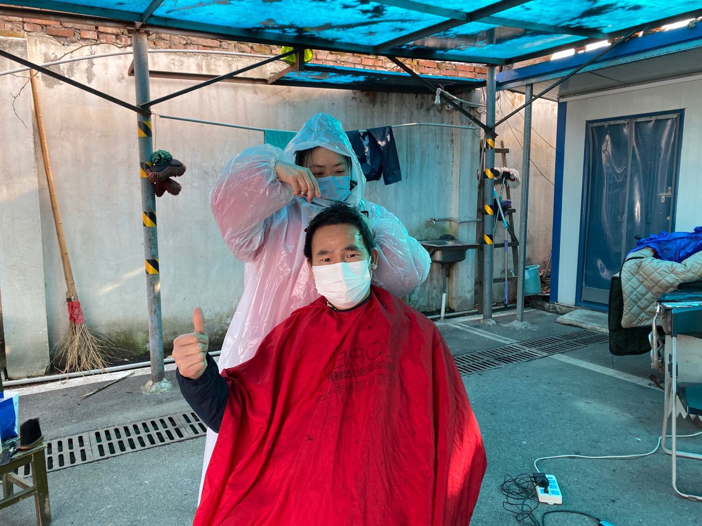 原來,志願者跟漢陽城管大隊反映,不少志願者正在為無處理髮犯愁。「守護天使」志願者車隊發起人嚴國賢介紹,「自封城之日起,武漢三鎮的幾十名司機就組建了這支車隊,從接送醫護人員上下班到幫助醫院、社區轉運物資,起早貪黑都難不到大家。反倒是理髮這個芝麻小事成了「老大難」。每天都有隊員在群里喊,『這頭髮再不剪可以搭鳥窩、扎小辮』,『我的手機面部識別已經不認識我了』。就在我還沒想到解決辦法的時候,接到漢陽城管執法大隊領導的電話,說會儘快安排師傅為我們理髮。今天這個理髮服務,簡直是我們收到的最貼心的的禮物。」