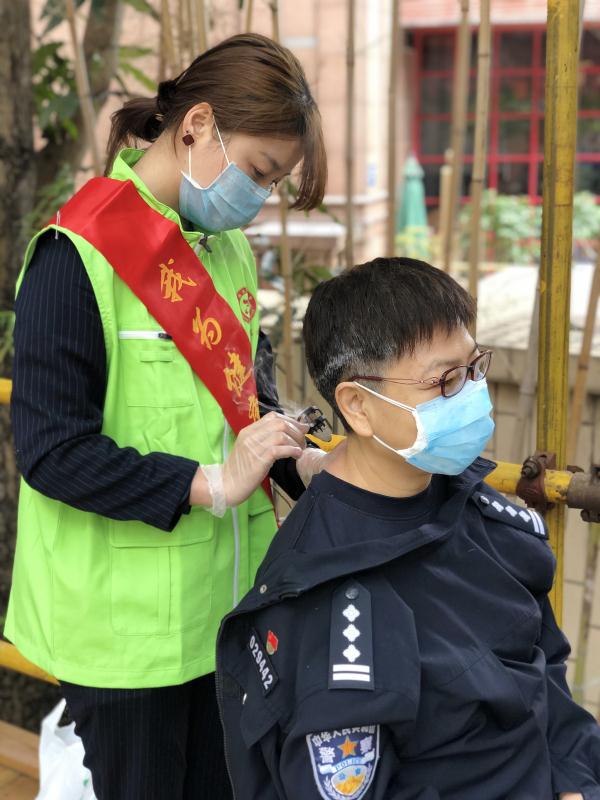 【香港商報網訊】記者 李苑立 報導:3月5日上午,廣州市天河區文明辦、共青團天河區委,廣州市天河區林和街道黨工委、林和街道辦事處聯合陸嘉集團旗下JK奇積美髮連鎖、香港修身堂,在天河區開展了「關愛防疫一線,暖心義剪志願服務」活動。該活動為「奮戰」在防疫抗疫一線人員提供理髮和香灸服務。