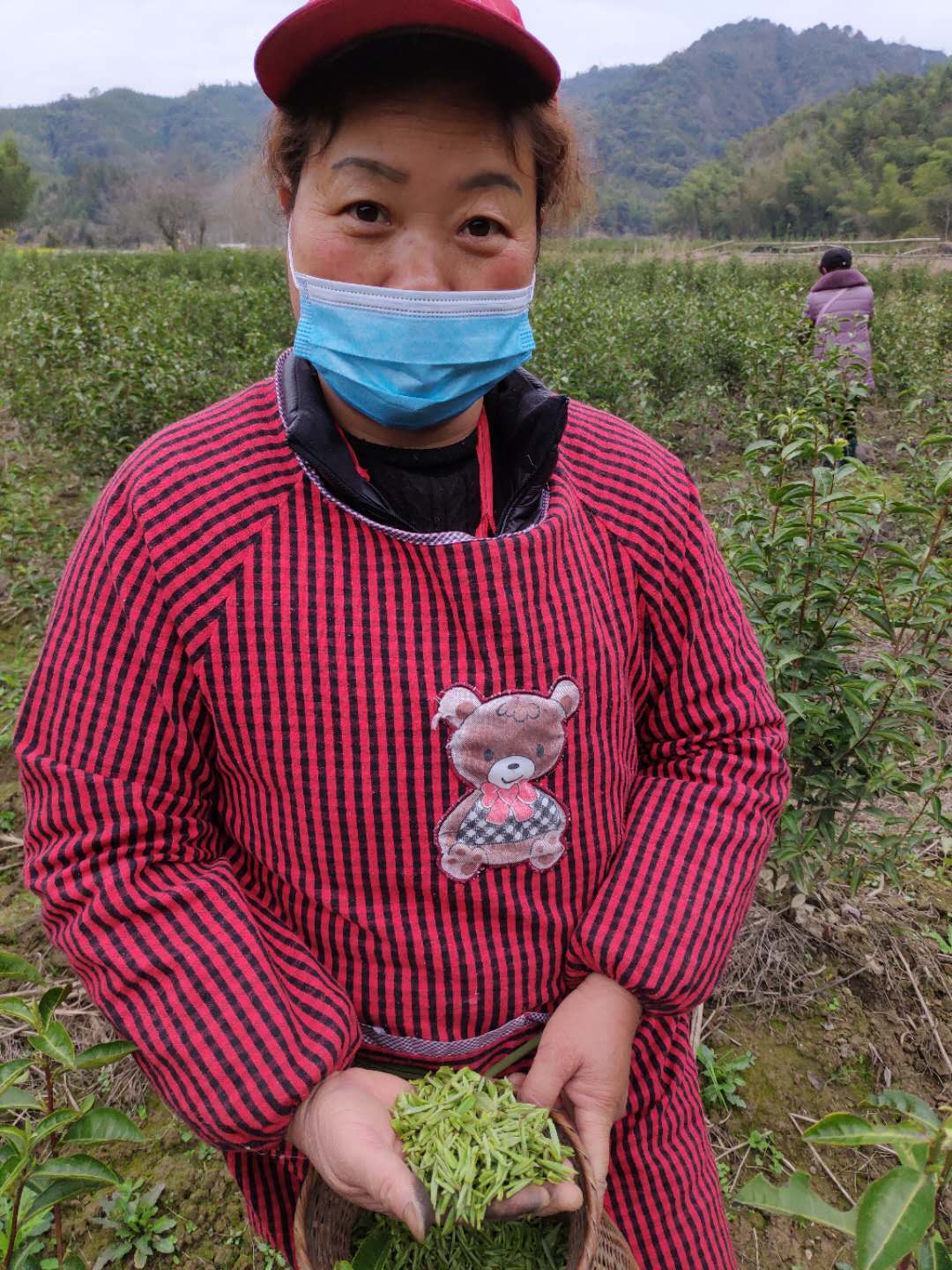 3月6日,在祁門縣蘆溪鄉蘆溪村祁雲家庭農場茶葉有機肥替代化肥示範基地,茶農正在採摘開園早茶