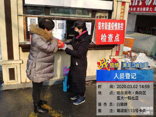 位於哈醫大一院社區郵政街110號的卡點,這裡共442戶1375名居民,其中醫護人員、基層防疫志願者佔有很高比例,每天進出達400餘人次,管理難度較大,情況複雜,還具有一定的危險性,值守的辛苦可想而知。