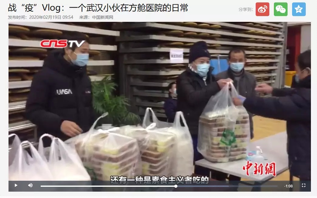 疫情時期,為武漢方艙醫院提供純素套餐的選擇,每天有近一千多醫護人員選擇純素套餐,產品供不應求。在這樣的情況下,齊善食品捐贈多款素食產品,給疫情背後的醫護人員健康美食和素食需求的支援。上個月,齊善素食為一線人員提供的第一批素食產品,受到醫護人員的廣泛好評。現在每天為醫護人員提供素食餐,捐贈物資確認及運輸,工作人員清點物資,將愛心產品輸送到各個醫院,成為齊善素食的每日必修課。接收齊善素食的第一家醫院為武漢市中心醫院後湖院區,此醫院距離華南海鮮市場不到2公里,是早期接觸新冠肺炎病例的醫院之一。接收齊善素食的福建支援中南醫院,是福建醫療隊支援湖北接管武漢中南醫院重症病房的一支團隊。接收齊善素食的武漢市漢口醫院建於1897年,已歷經風雨杏林春滿120多年。