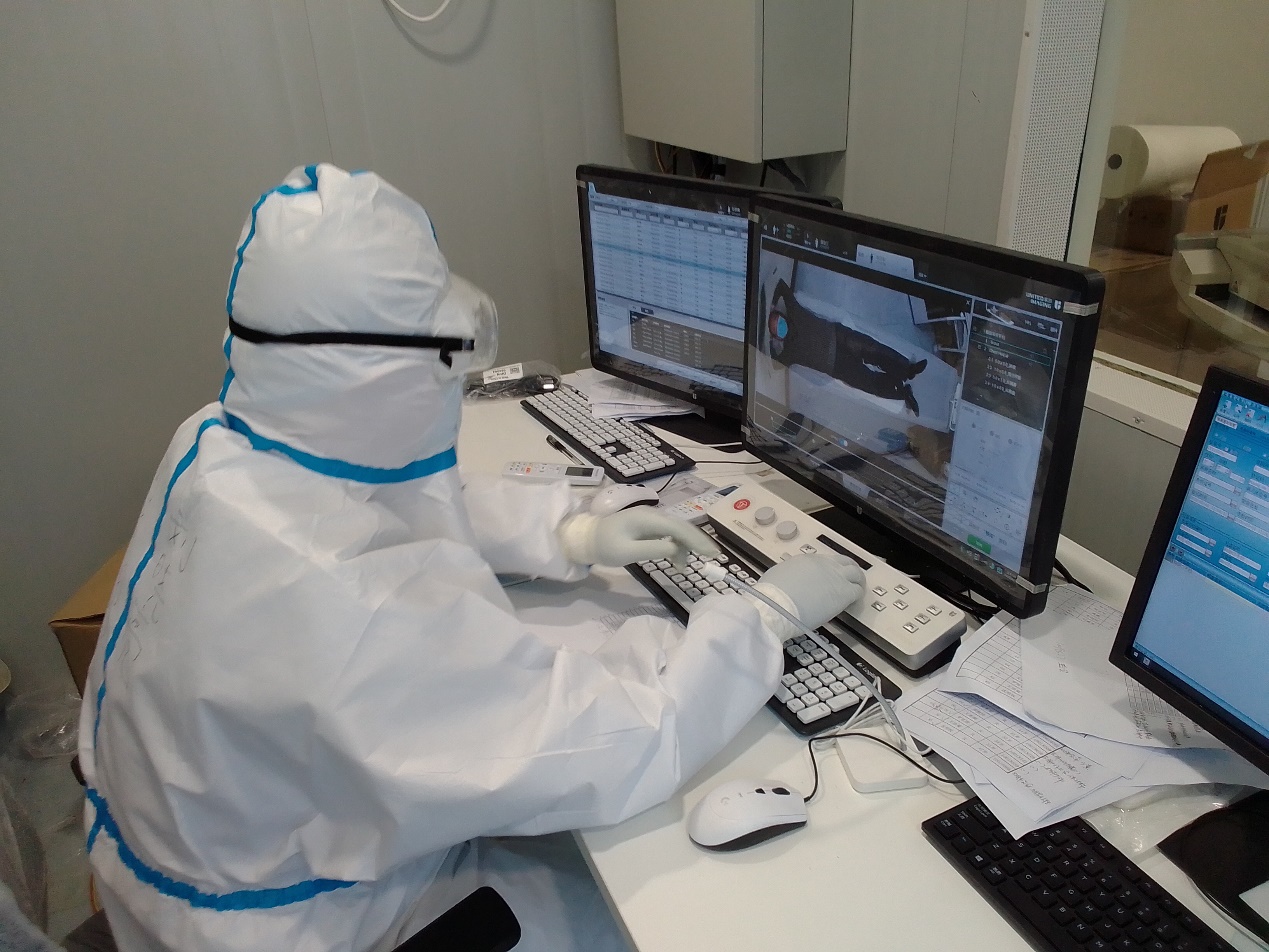 劉曉亮在武漢武昌方艙醫院為患者做CT檢查