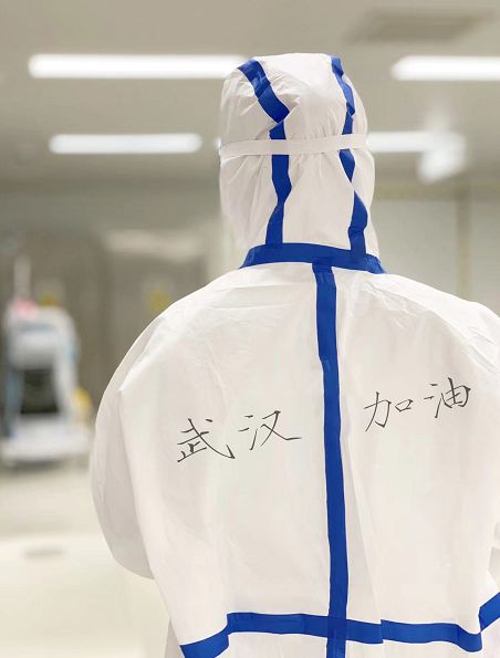 該院骨科副主任醫師王志勇正和將近半年沒有見面的愛人和孩子一起其樂融融地看春節聯歡晚會。然而,一個電話打破了除夕夜的和諧,得知武漢疫情形勢嚴峻的王志勇,簡單地收拾了一下行李,拚命驅車趕回武漢。一路的艱難險阻,也沒能阻擋他逆行的決心和回「家」的步伐。終於,經歷過「人生最艱難的8小時」,王志勇終於回到了亞心總醫院。王志勇讓同事在自己的防護服上寫下「武漢加油」。看到這短短的幾個字,患者們的心也溫暖了。