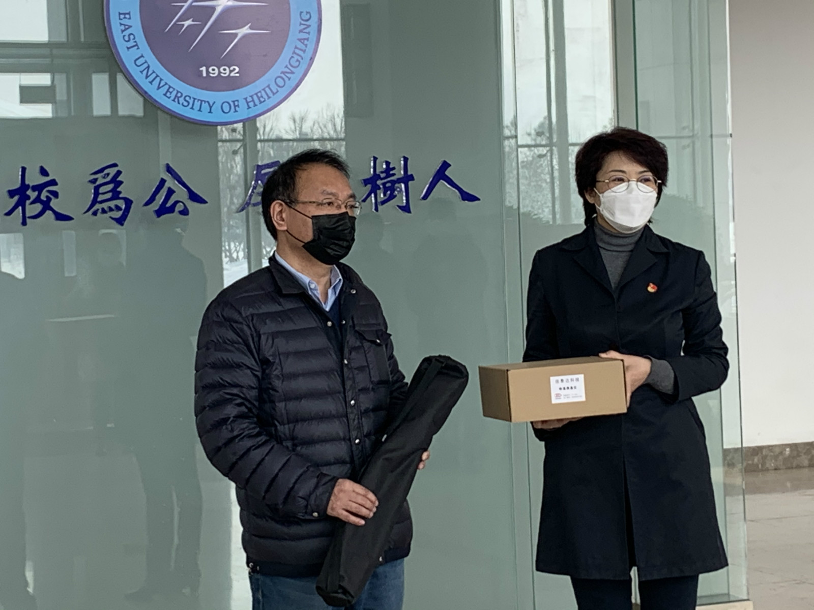 東方學院黨委書記王敏、副院長韓麗霞代表學院也接受了捐贈,並對哈爾濱佳泰達科技有限公司在防疫關鍵時期對學校的關心幫助表示感謝。