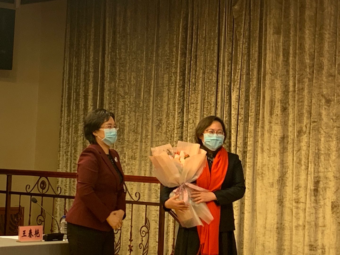 齊秀娟為各戰線代表送上鮮花 付彥華/攝