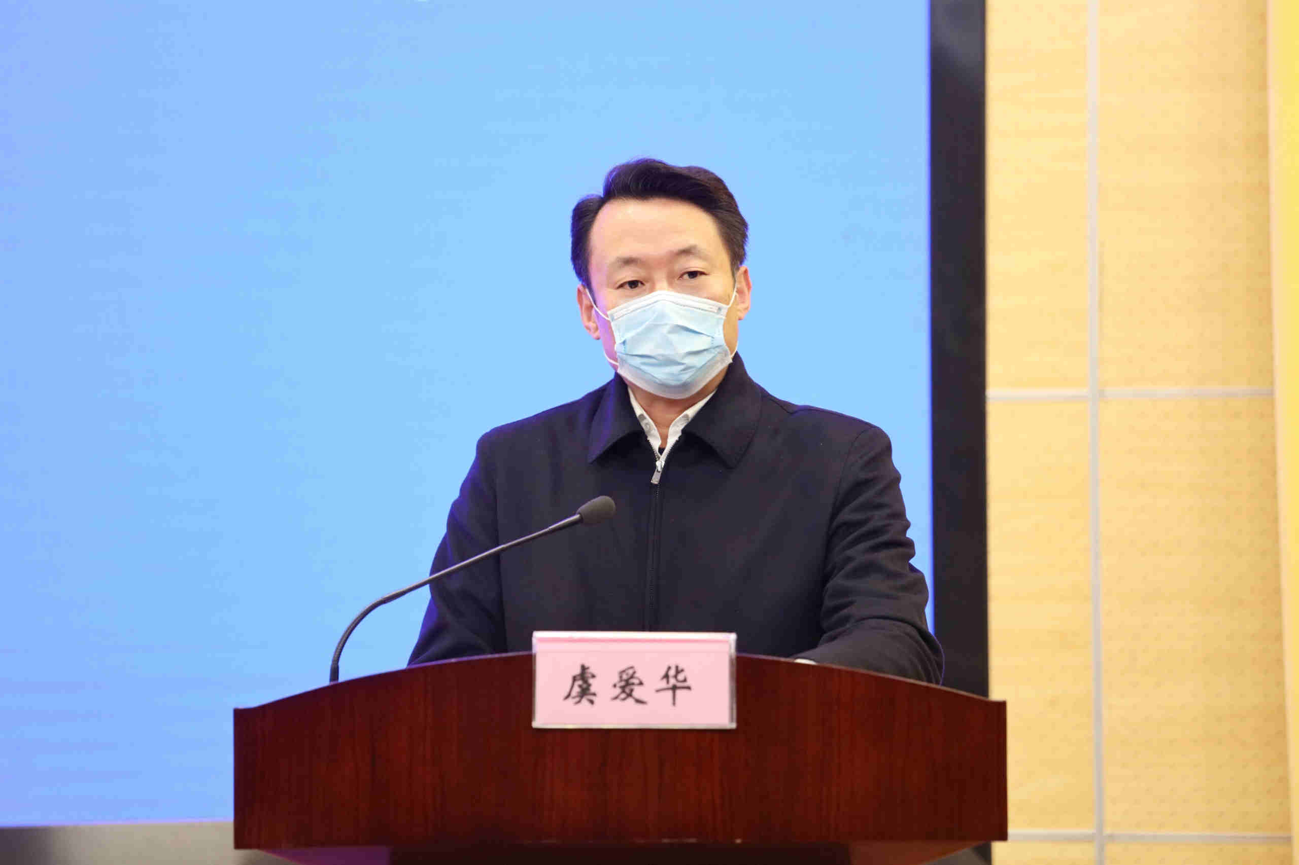 安徽省新冠肺炎疫情防控工作新聞發佈會現場。省委常委、宣傳部部長、省疫情防控工作領導小組副組長虞愛華主持(劉煒鑫/攝)