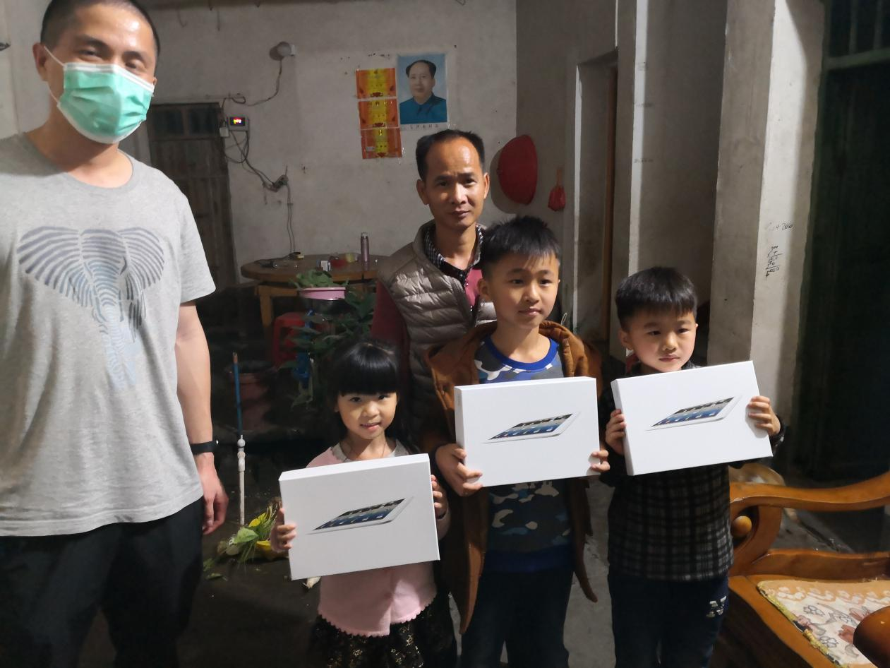 秦龍告訴記者,黃煥新夫妻都有殘疾,家庭條件十分艱苦,3個小孩正在上小學和初中,之前只能依靠家裡的一部手機上網課,上課的效果很不好。希望這些設備能夠讓貧困戶的小孩上課的條件好一點,功課能儘快跟上去。