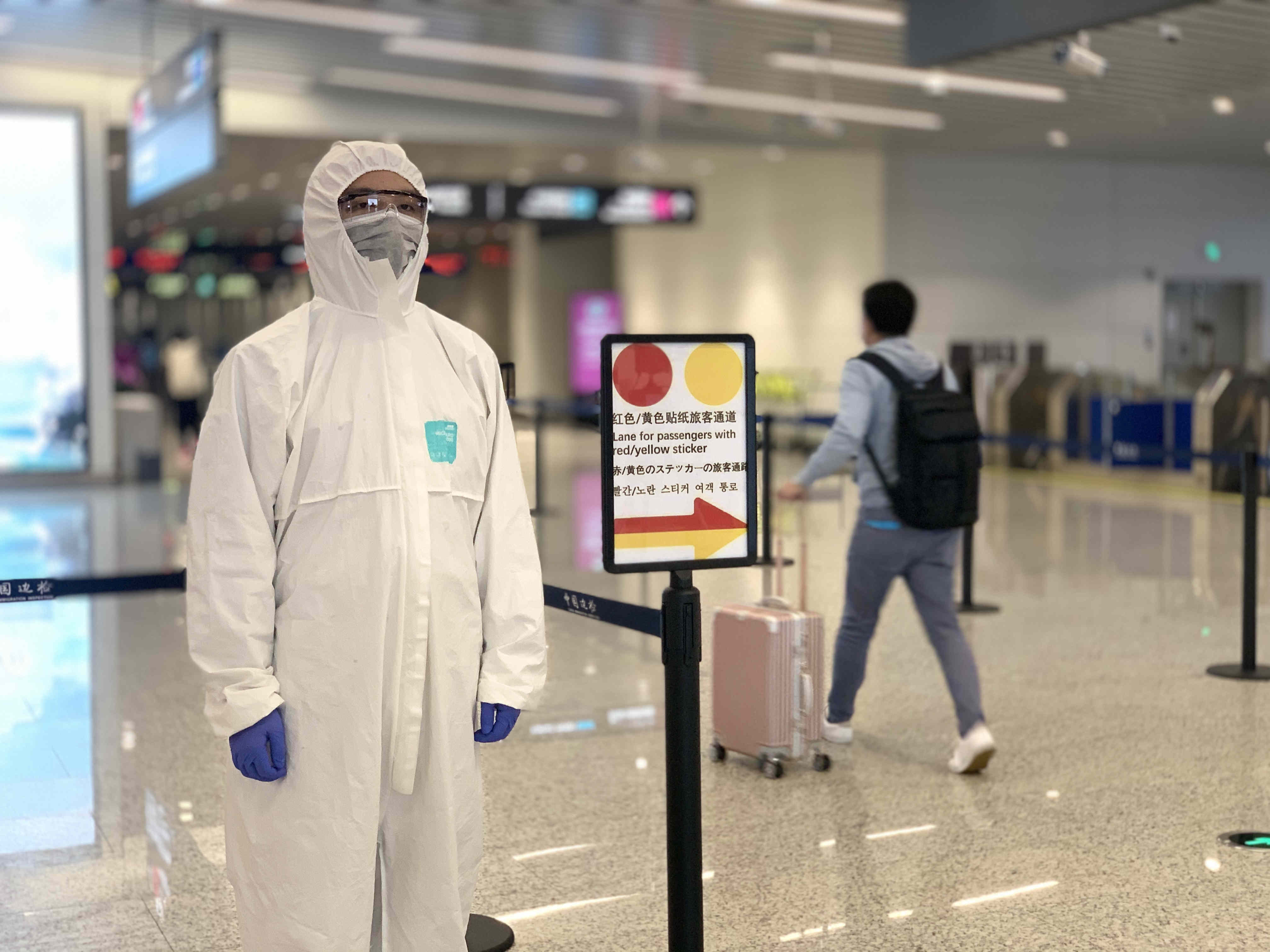 需要指出的是,除了第一時間「攔截」、避免航站樓內「混流」,第二套方案精細化了旅客分類服務保障。重點航班抵達後,檢疫無異常的旅客,會在其護照上貼上「紅黃綠」三色標籤,各保障單位可以根據不同顏色提供不同類別的保障。