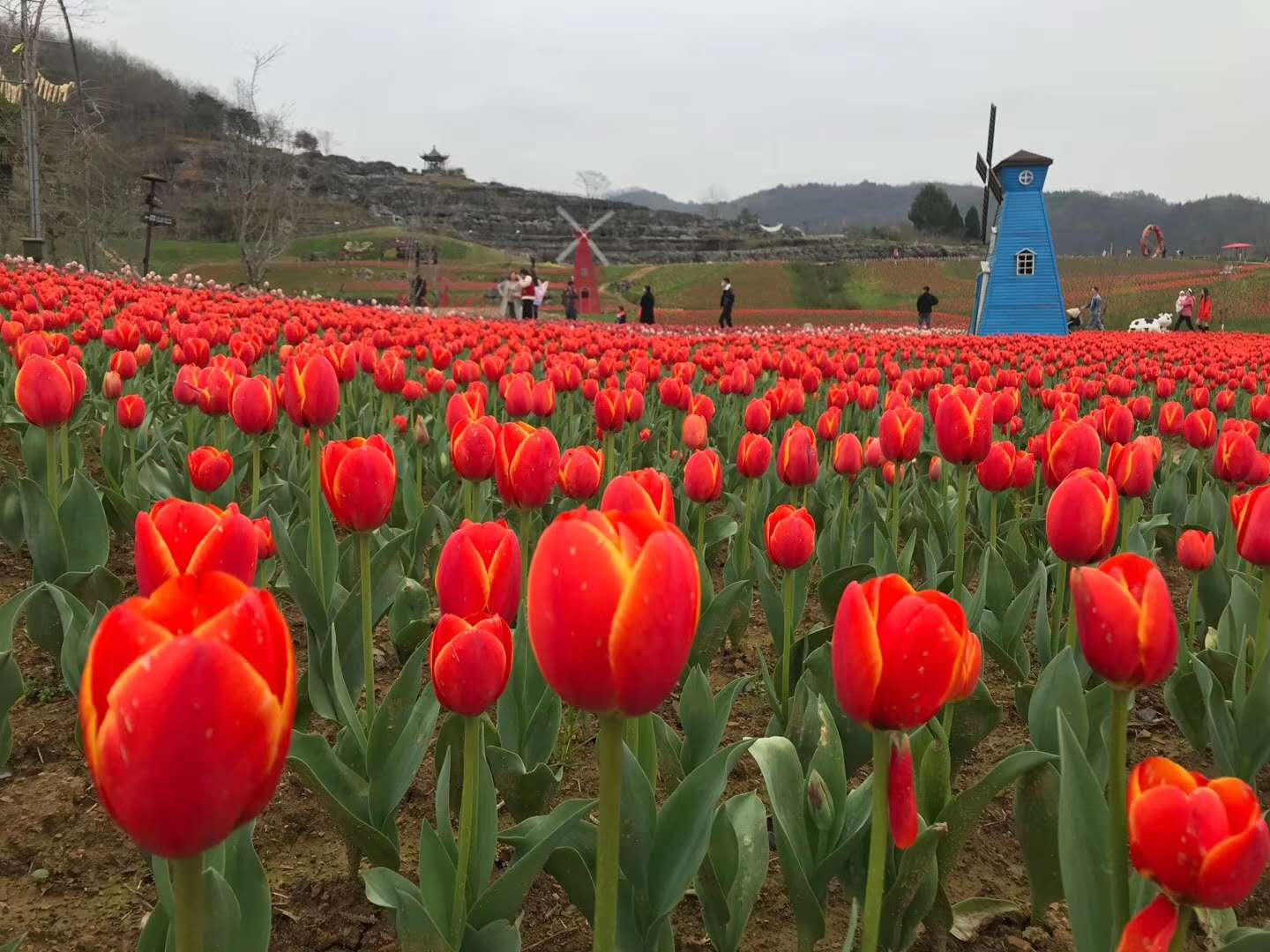 3月12日拍攝的黟縣西遞石林景區的花海美景