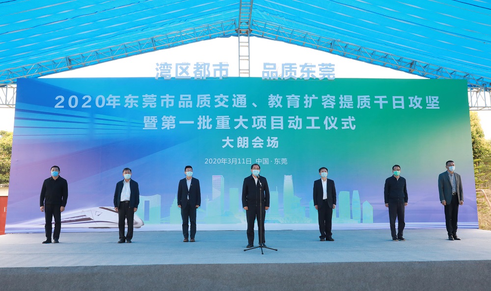 「我宣布,2020年東莞市品質交通、教育擴容提質千日攻堅暨第一批重大項目動工!」東莞市委書記梁維東一聲令下,在大朗鎮的松山湖科學城至光明科學城通道(東莞段)首期工程現場,六台挖掘機同時開工。
