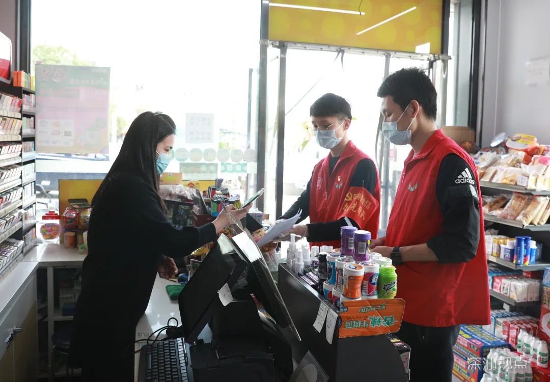 團市委志願者許寶墨當天清晨便從深圳市區出發趕到深汕合作區參與本次活動。他向記者介紹,大家的任務主要是對當前「三小場所」開店經營的商戶採取的防控措施進行逐項檢查和提醒,向經營者們了解經營情況及是否面臨困難,引導他們填寫經營現狀問卷,並分發「三小場所」防疫防控工作指引,向商戶及周邊群眾普及防控知識。
