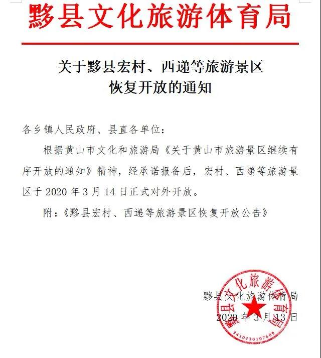 黟縣文旅體局13日發佈通知