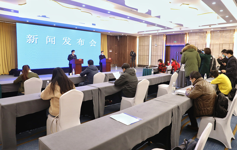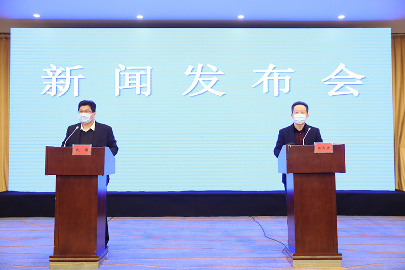 發佈會現場,安徽省委宣傳部新聞發佈處處長武瀟(左)主持發佈會,省市場監管局副局長張志宏介紹相關情況並答記者問(劉煒鑫/攝)
