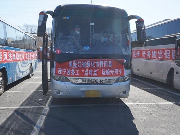 此次「點對點」輸送工作,綏化市青岡縣用10台大巴車向寧波利時集團、阿爾卑斯電子有限公司「無縫」輸送勞務人員299人,其中包括112名貧困戶。他們將在交警部門的護送下,經過40多個小時的車程,直接開進寧波市的兩家工廠,全程感染風險可控。到達寧波後不需要進行隔離14天,進入企業就可以立即上崗了。既不耽誤農民工開工資,又滿足了企業用工的迫切需求。據介紹,以上兩家企業實習3天就可以上崗,月平均工資4800元以上,並享受繳納五險、提供免費住宿及工作餐的待遇。