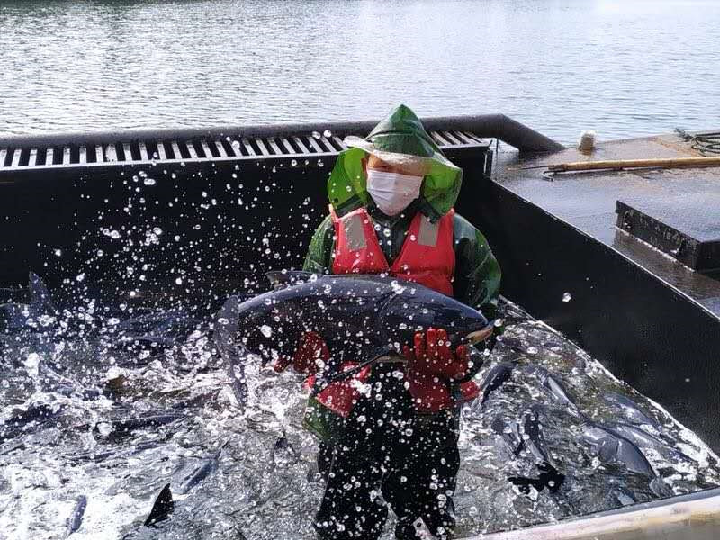拉網,趕魚,收魚,工人們通力合作忙打撈